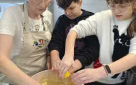 Wczoraj podczas lekcji języka kaszubskiego w klasie 5 mieliśmy prawdziwą słodką podróż do tradycji. Razem z panią Danutą Leszczyńską piekliśmy pączki, poznając dawne zwyczaje i smakując to, co na Kaszubach w zapusty najważniejsze – radość bycia razem.